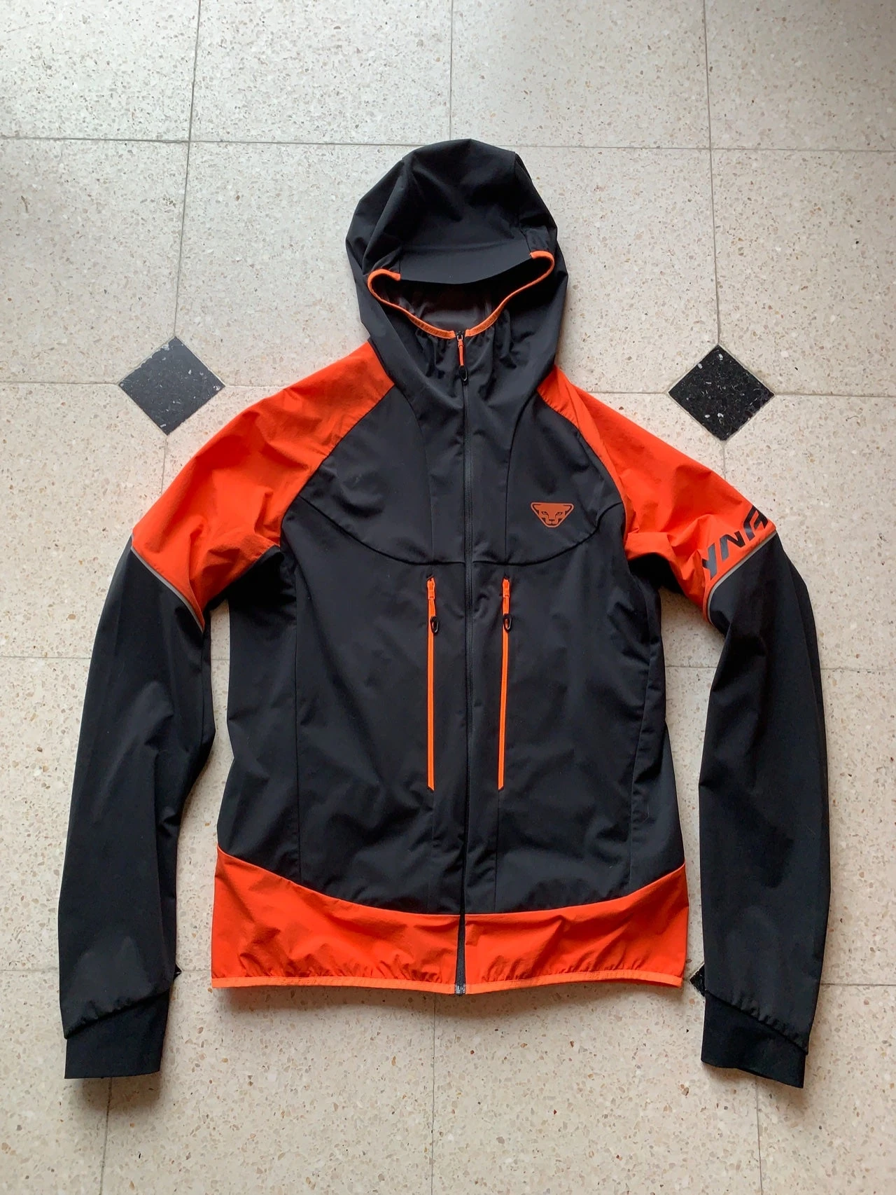 à capuche et passe pouce noire et orange